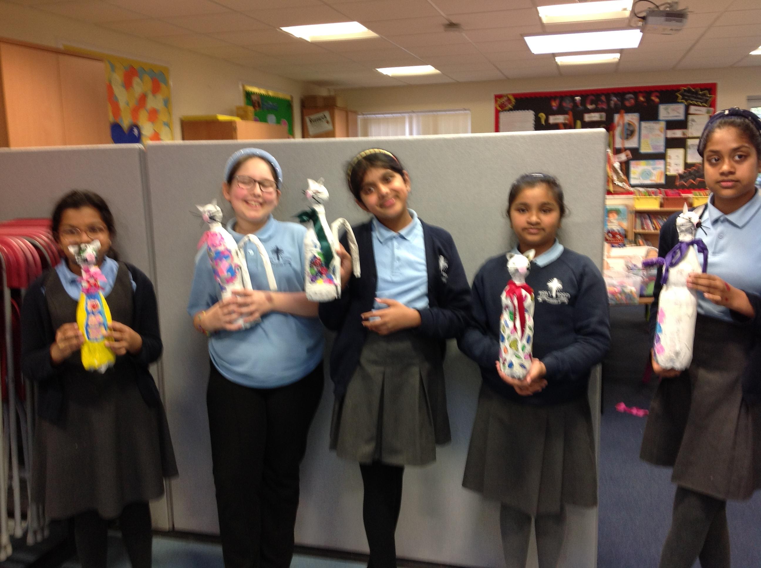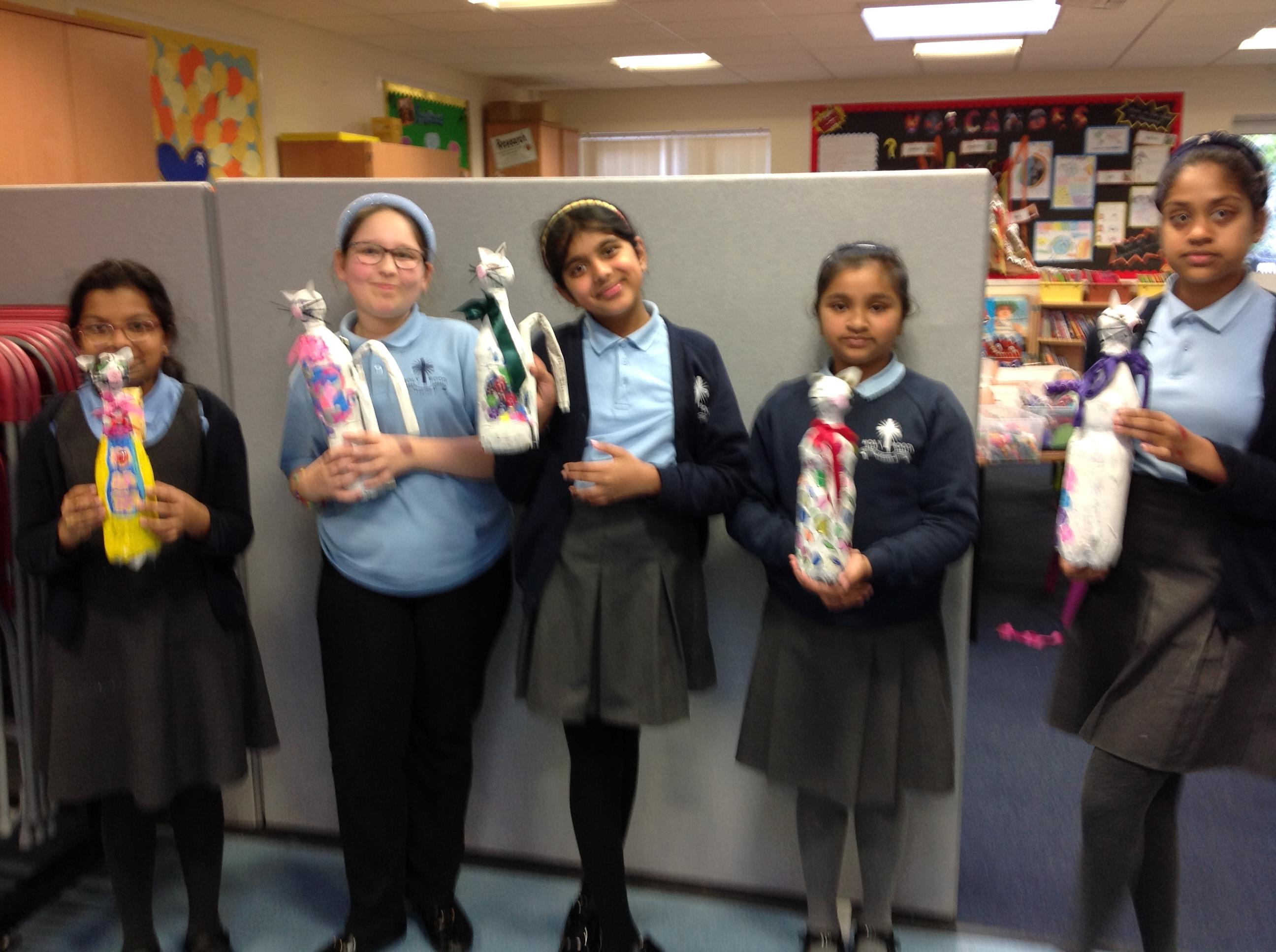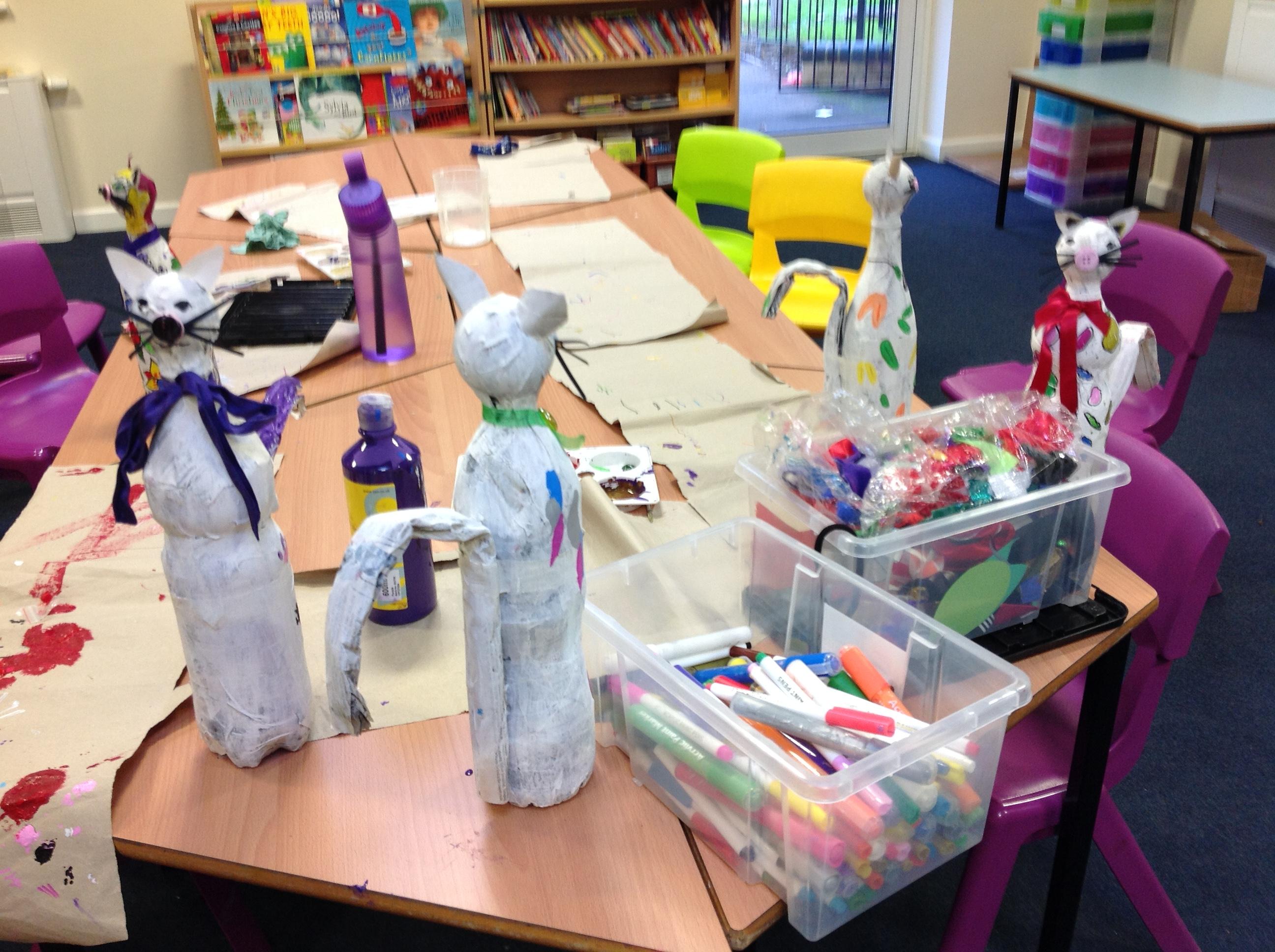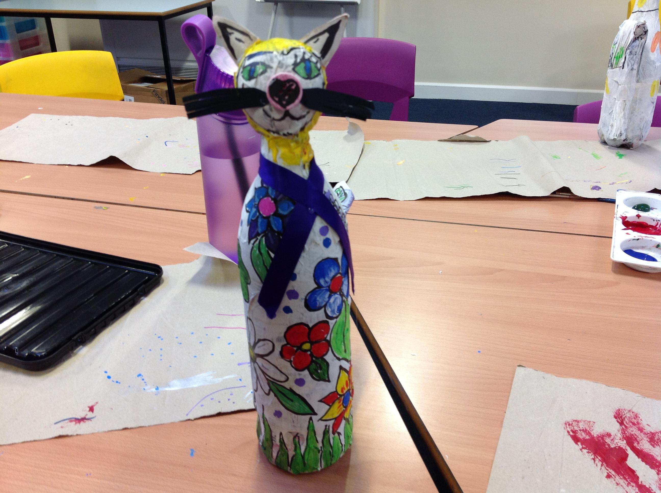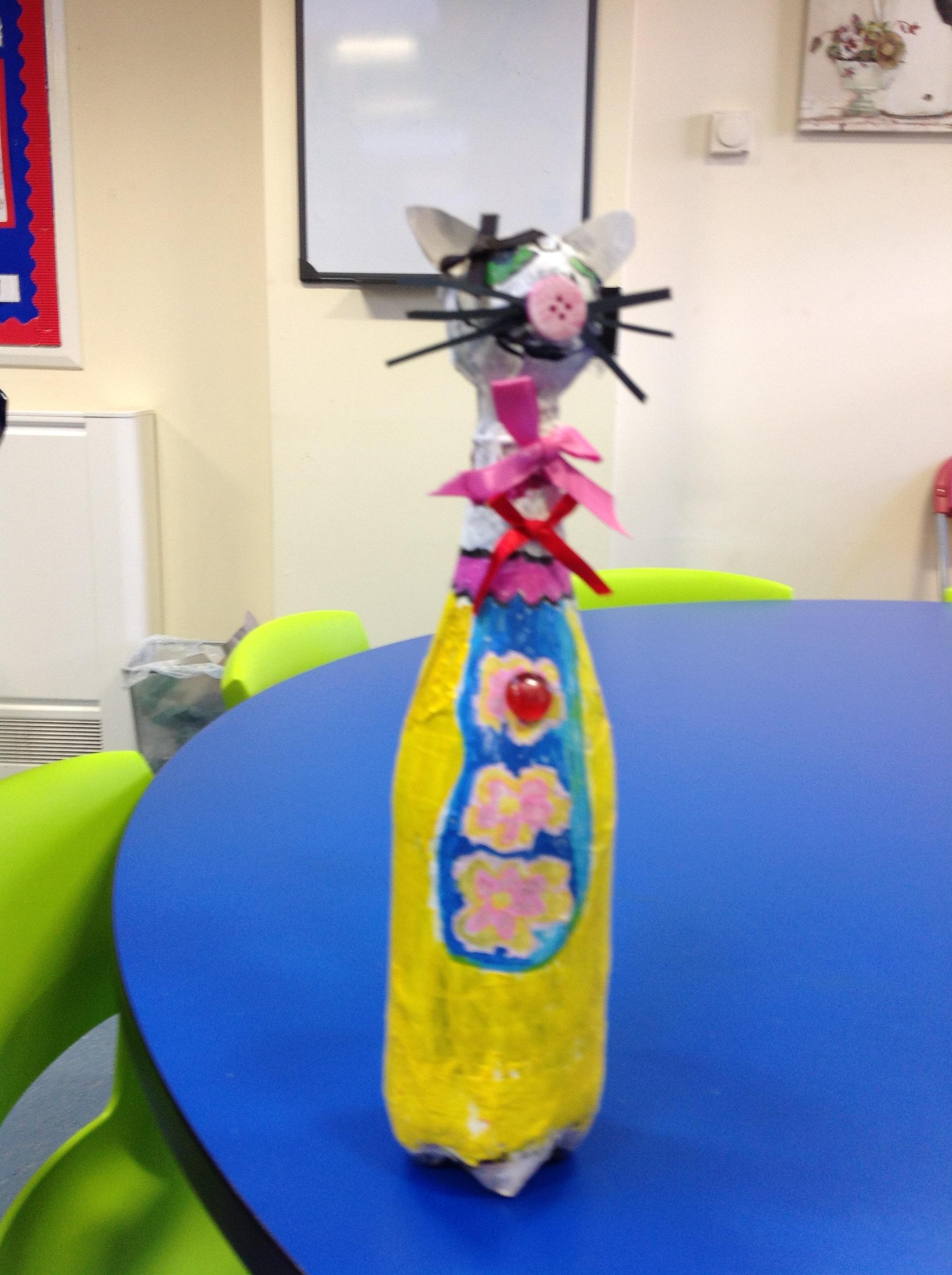 We recycled plastic bottles to create our own cats!