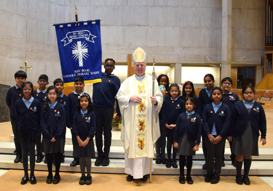 At Holy Rood, every child is a chaplain! To help support adults, we have a dedicated Chaplaincy lead team made up of children from Key Stage 2, who all take an active role in supporting and promoting the Catholic life of the school. All children are given the opportunity to join the team through an application process. Our Chaplaincy team are then commissioned during a special ceremony, where they receive their Chaplaincy badge and contract from Bishop Declan at Clifton Cathedral. The children are enthusiastic and take pride when carrying out their many roles and responsibilities. During weekly Chaplaincy club, the team are able to come together to discuss what they would like to do in the coming weeks to strengthen mission, deepen prayer and enable communion.