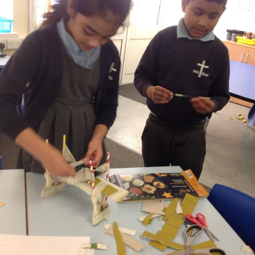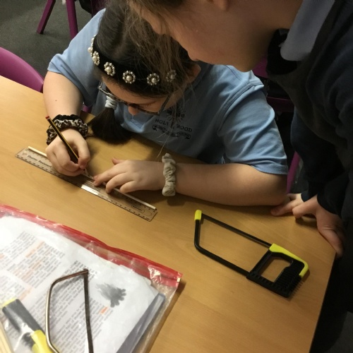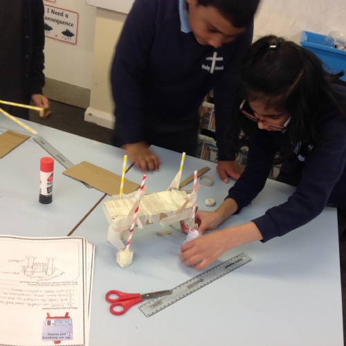 Year 4 have been making Greek catapults using wood and a hacksaw and joining materials using the most effective way.