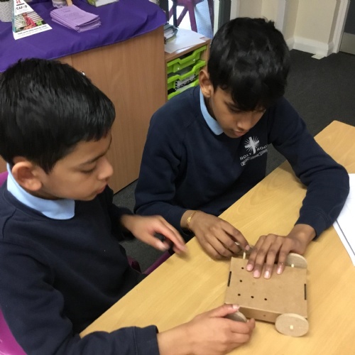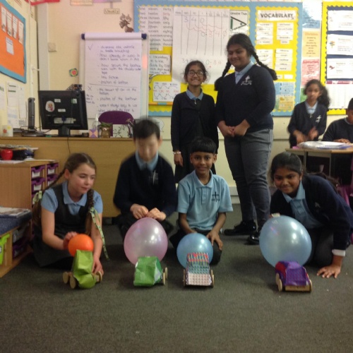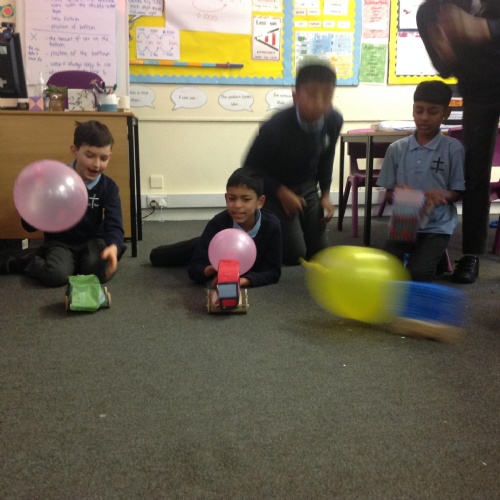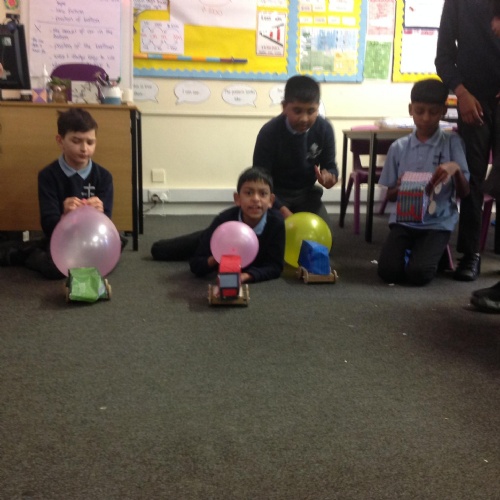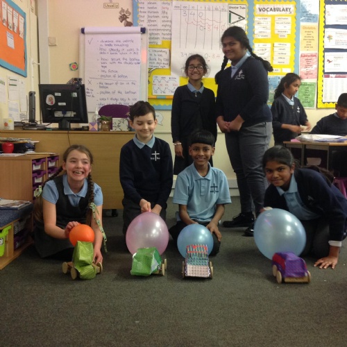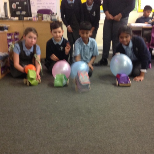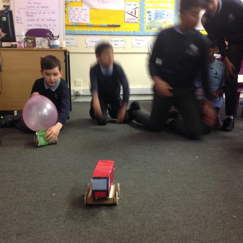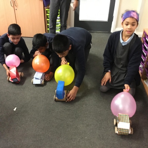 Year 5 have been making their very own vehicles being powered by pneumatics.