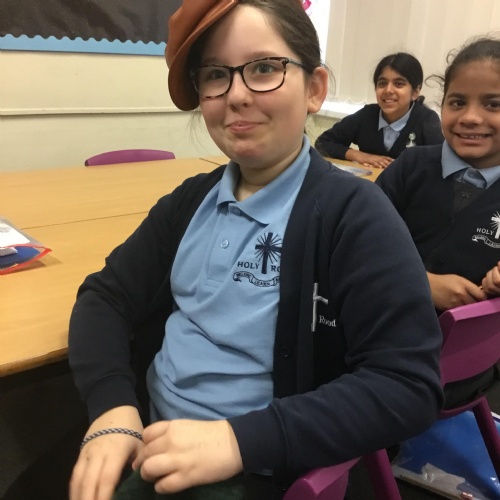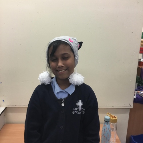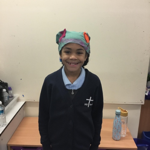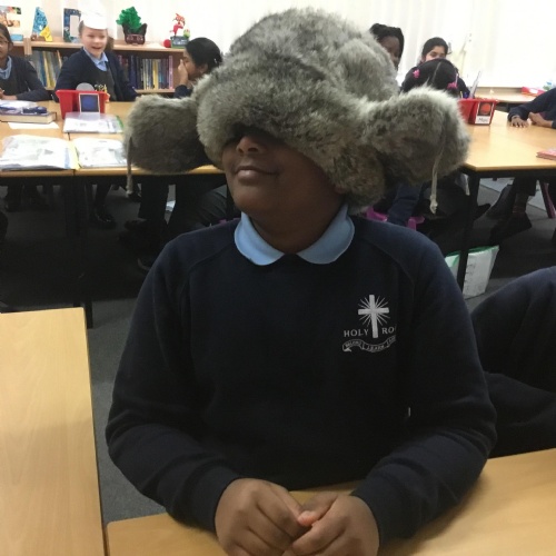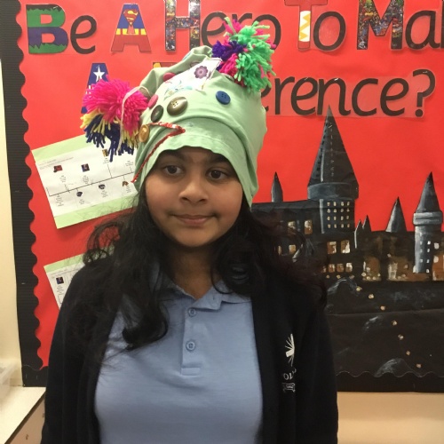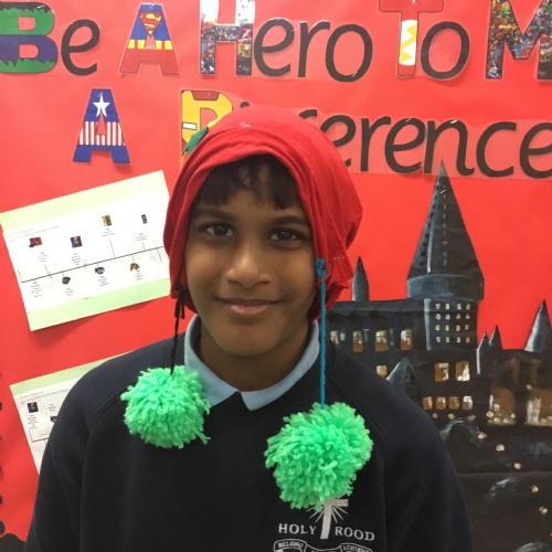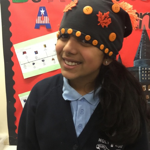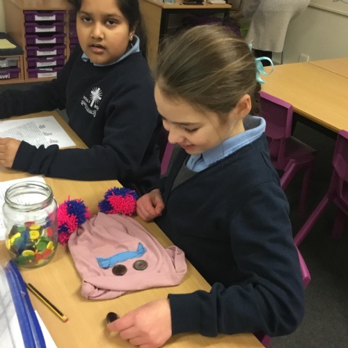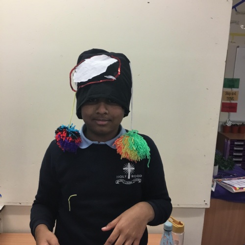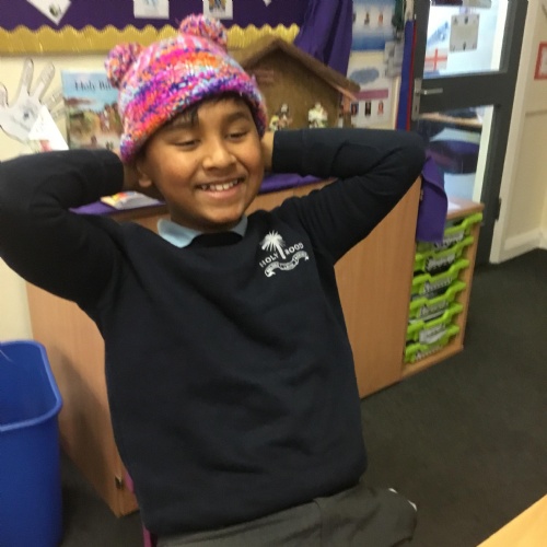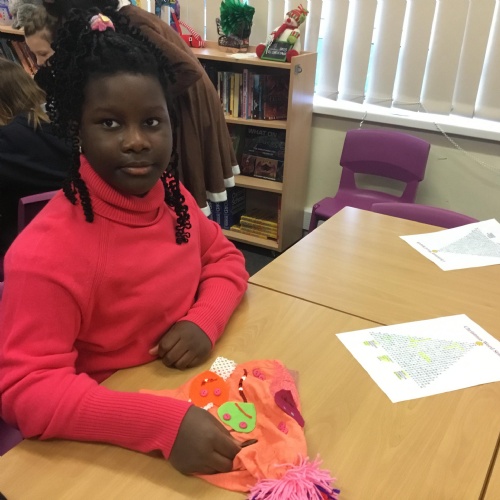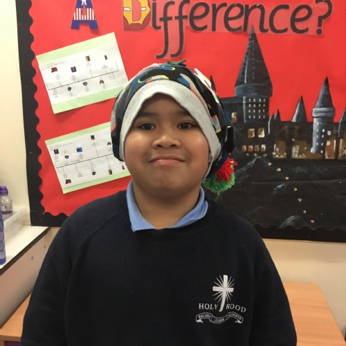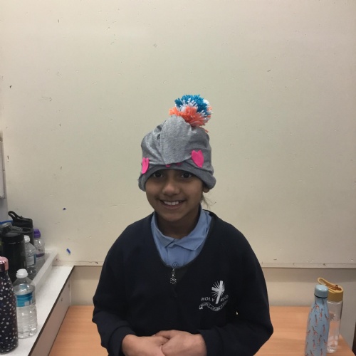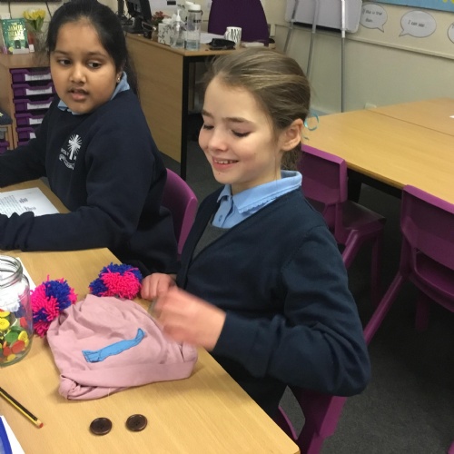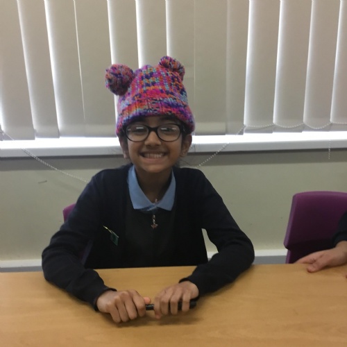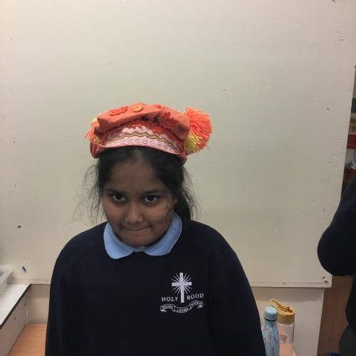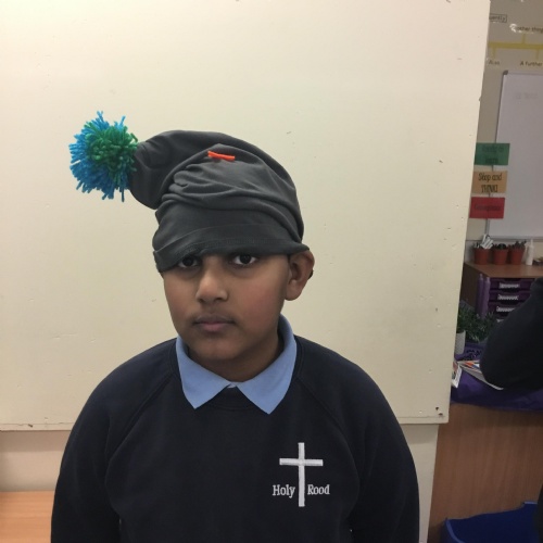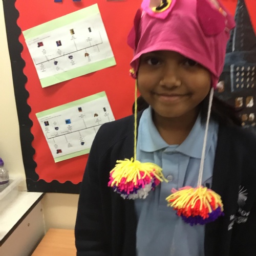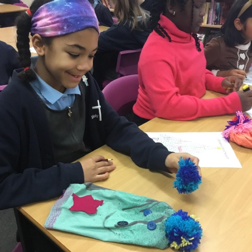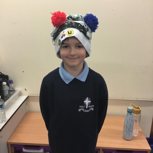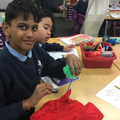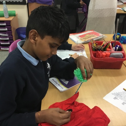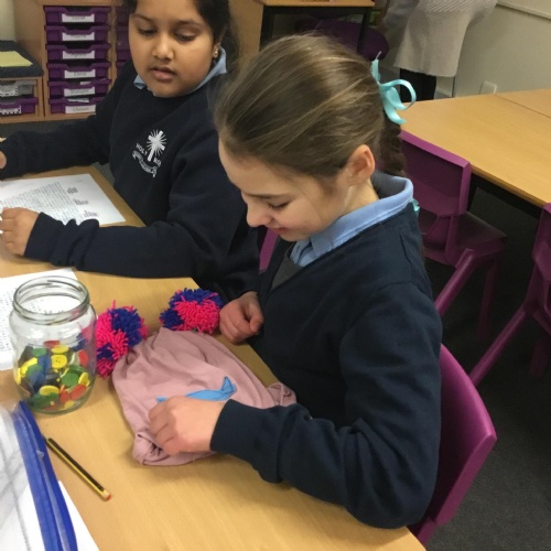 They also made their own bobble hats from fabric joining using the sewing machines and then making their own pom-poms to decorate them.