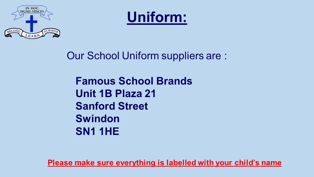 The above store supplies uniform displaying our logo. Branded uniform is not compulsory. However, all items must be worn in the school colours detailed below. Non-branded items can be purchased from any supermarket / school uniform shop.