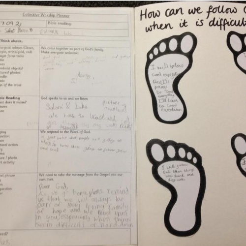 As a school we believe that Christian worship in a Catholic school is concerned with giving glory, honour, praise and thanks to God. Religious Education of our children not only imparts knowledge as they learn about their Faith, but also deepens their relationship and friendship with God. This is done through deepening prayer in many different forms such as song, role play, music art and dance. The children have many opportunities to pray and as a school we deliver worship through whole school liturgy, class Prayer and Liturgy, hymn practise, Children's Mass and whole school celebrations.