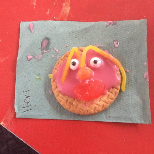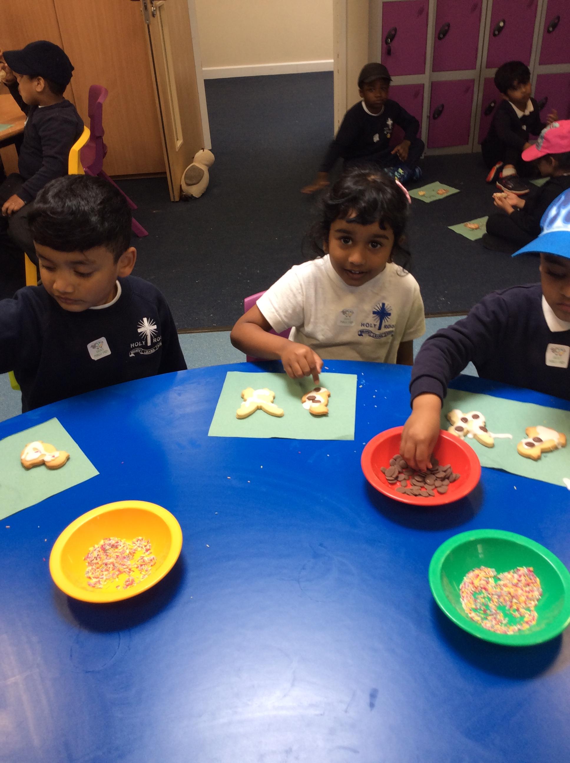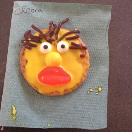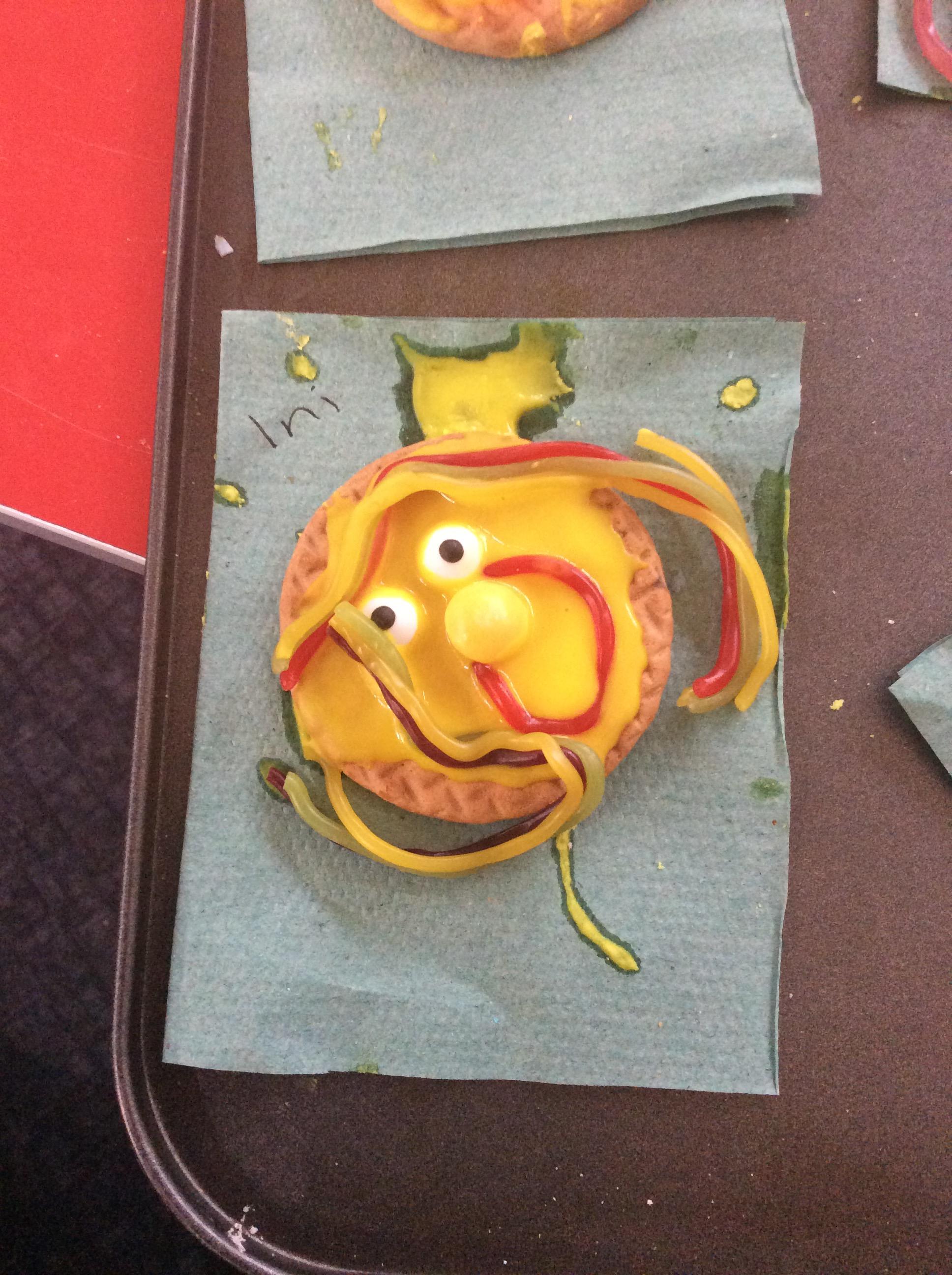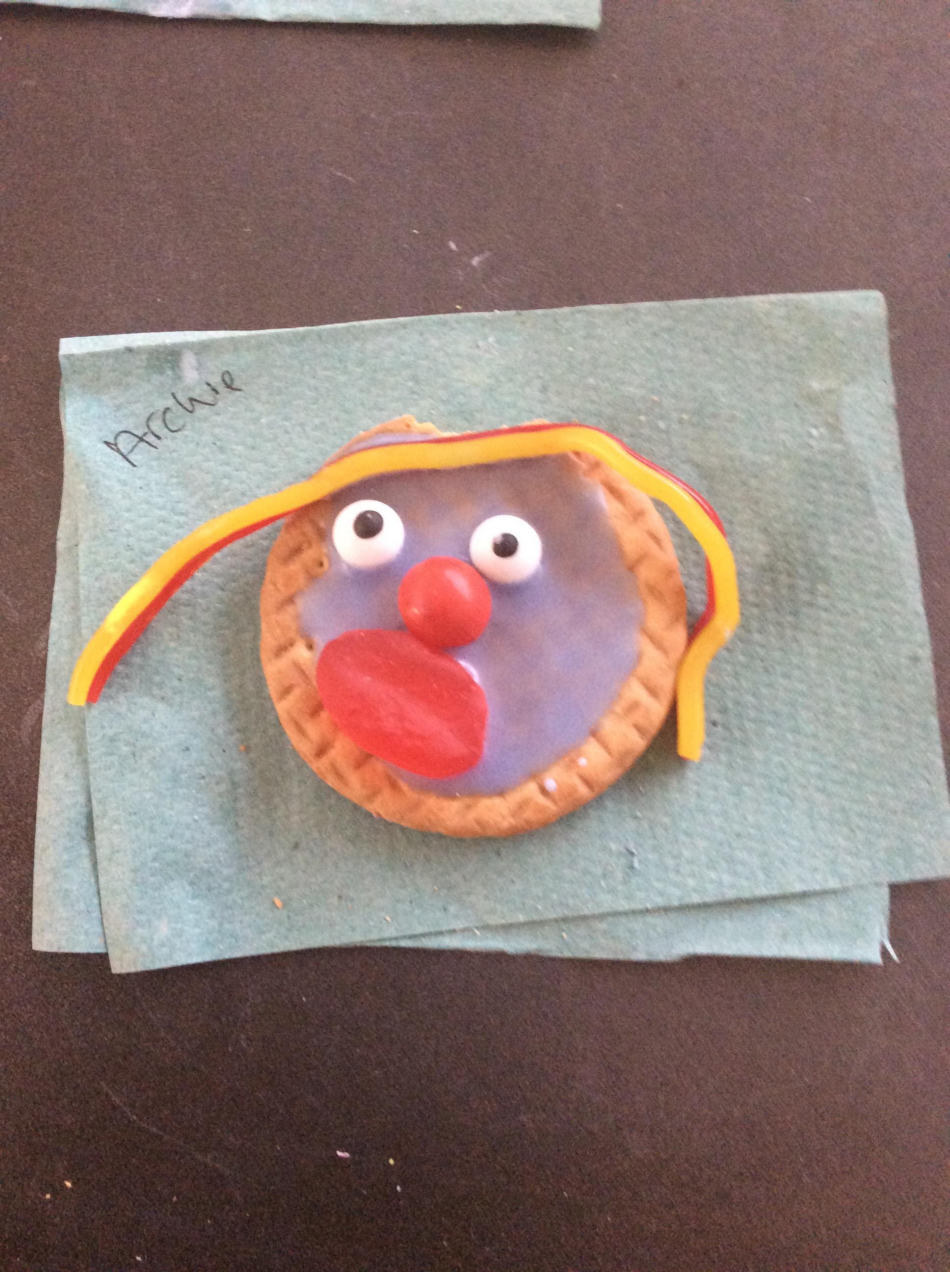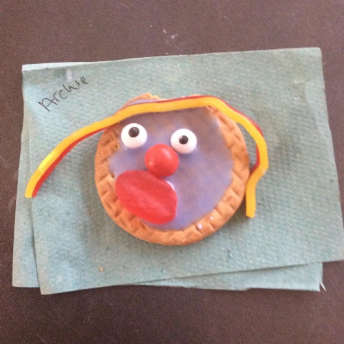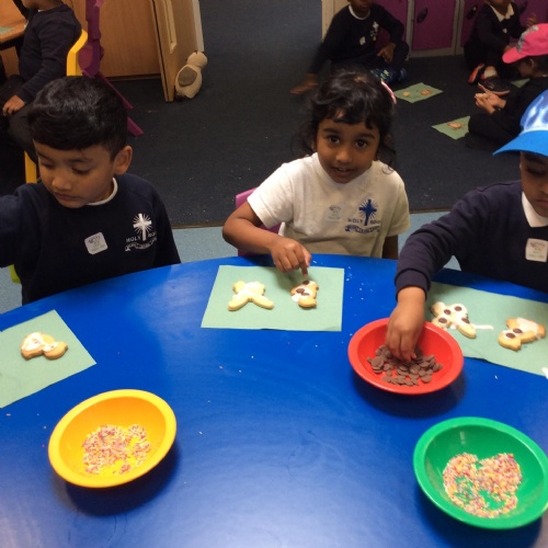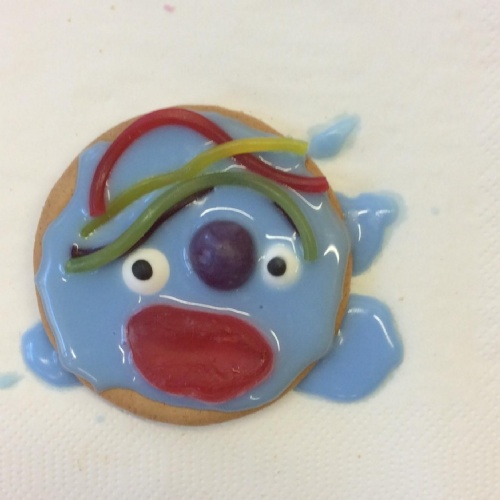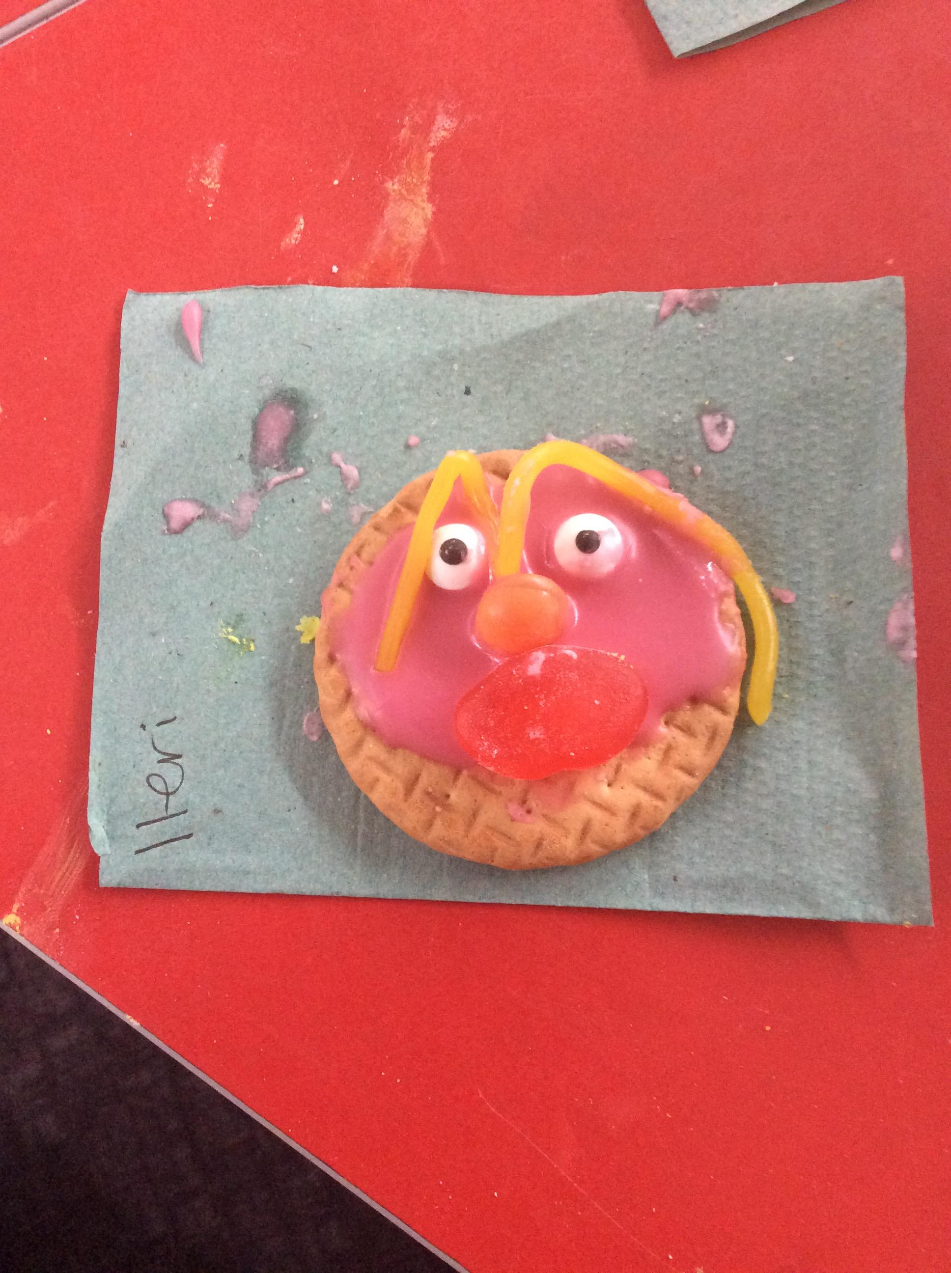 After learning the story, The Gingerbread Man, we changed it to become the story of, The Cookie Man.. We made our own cookie men by decorating biscuits.