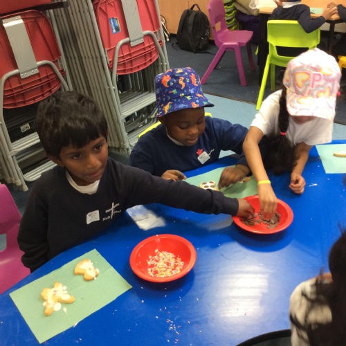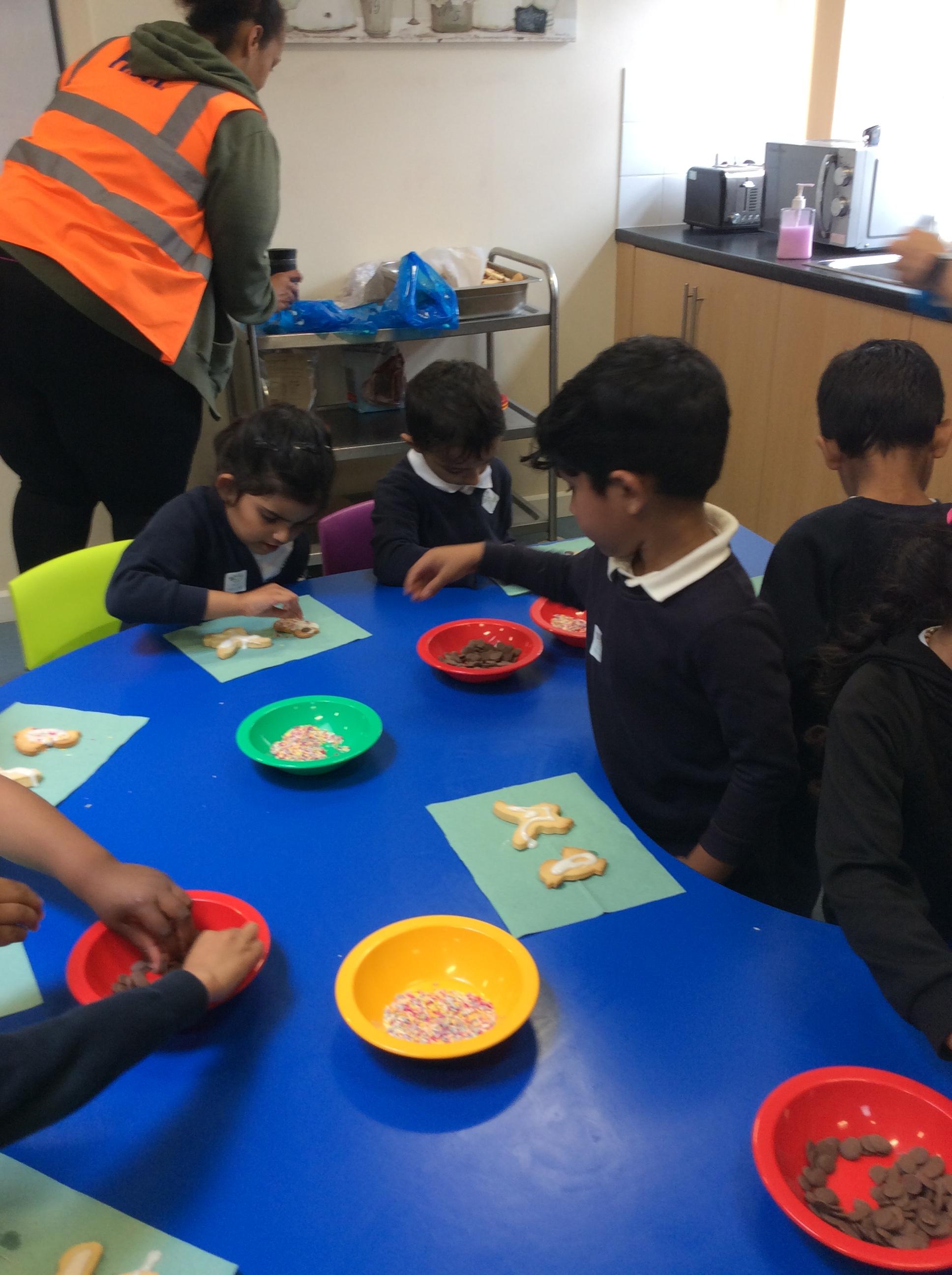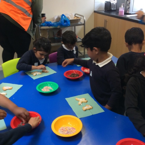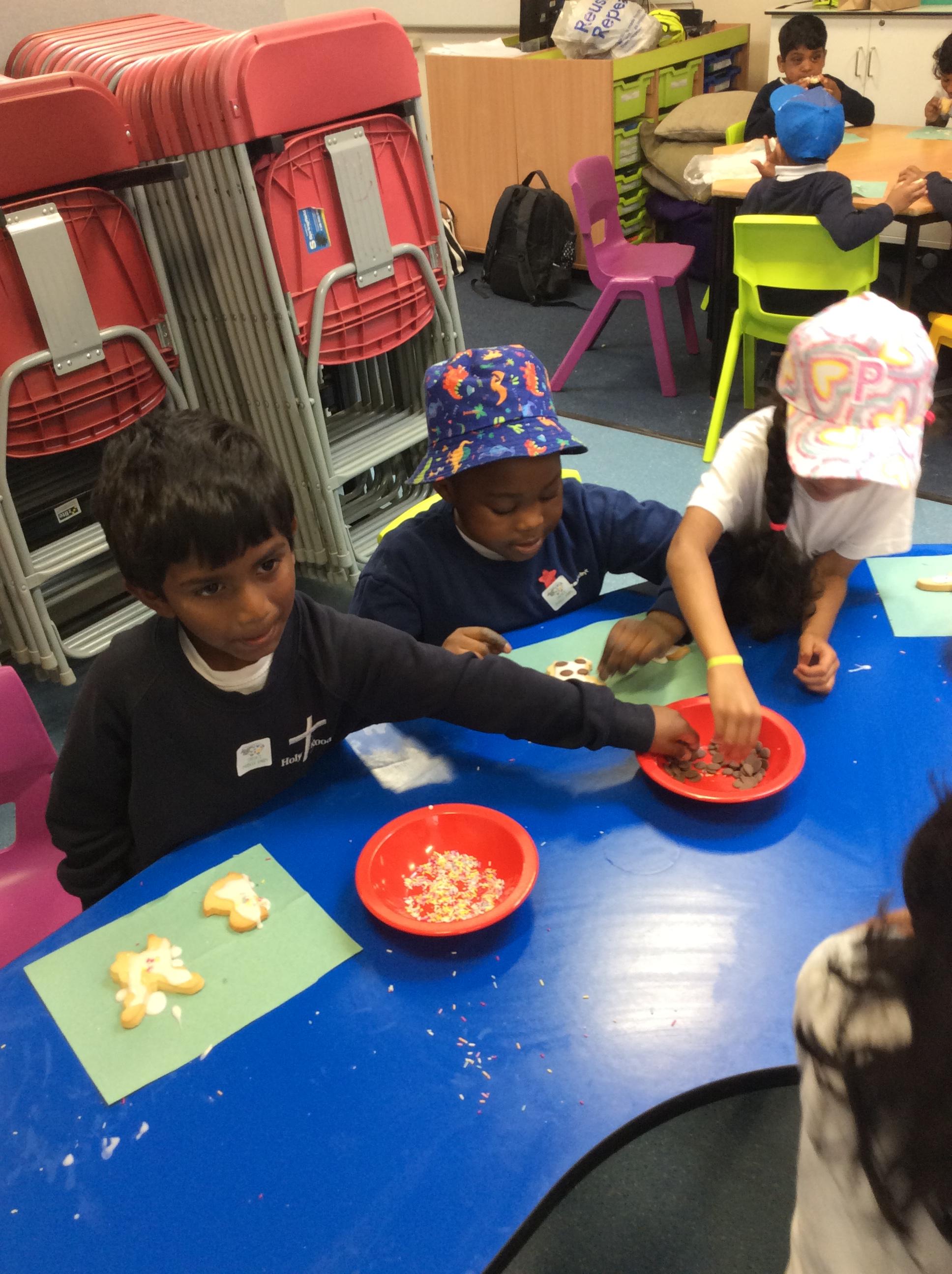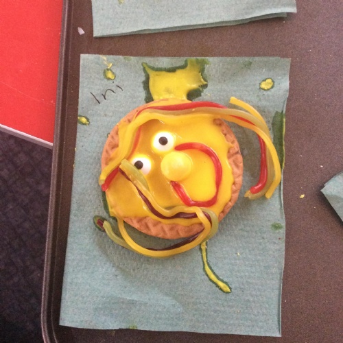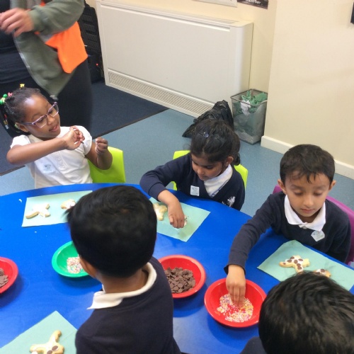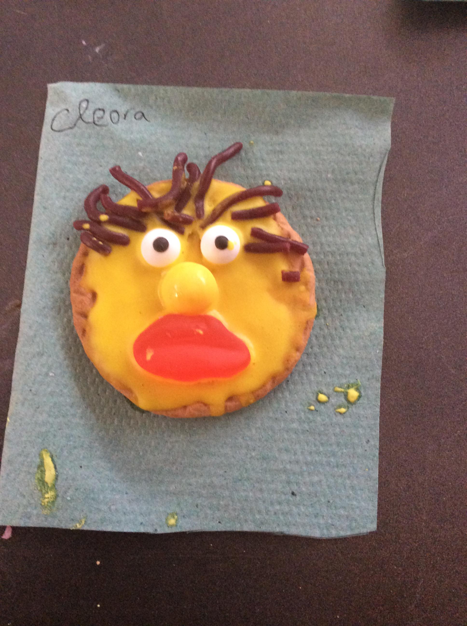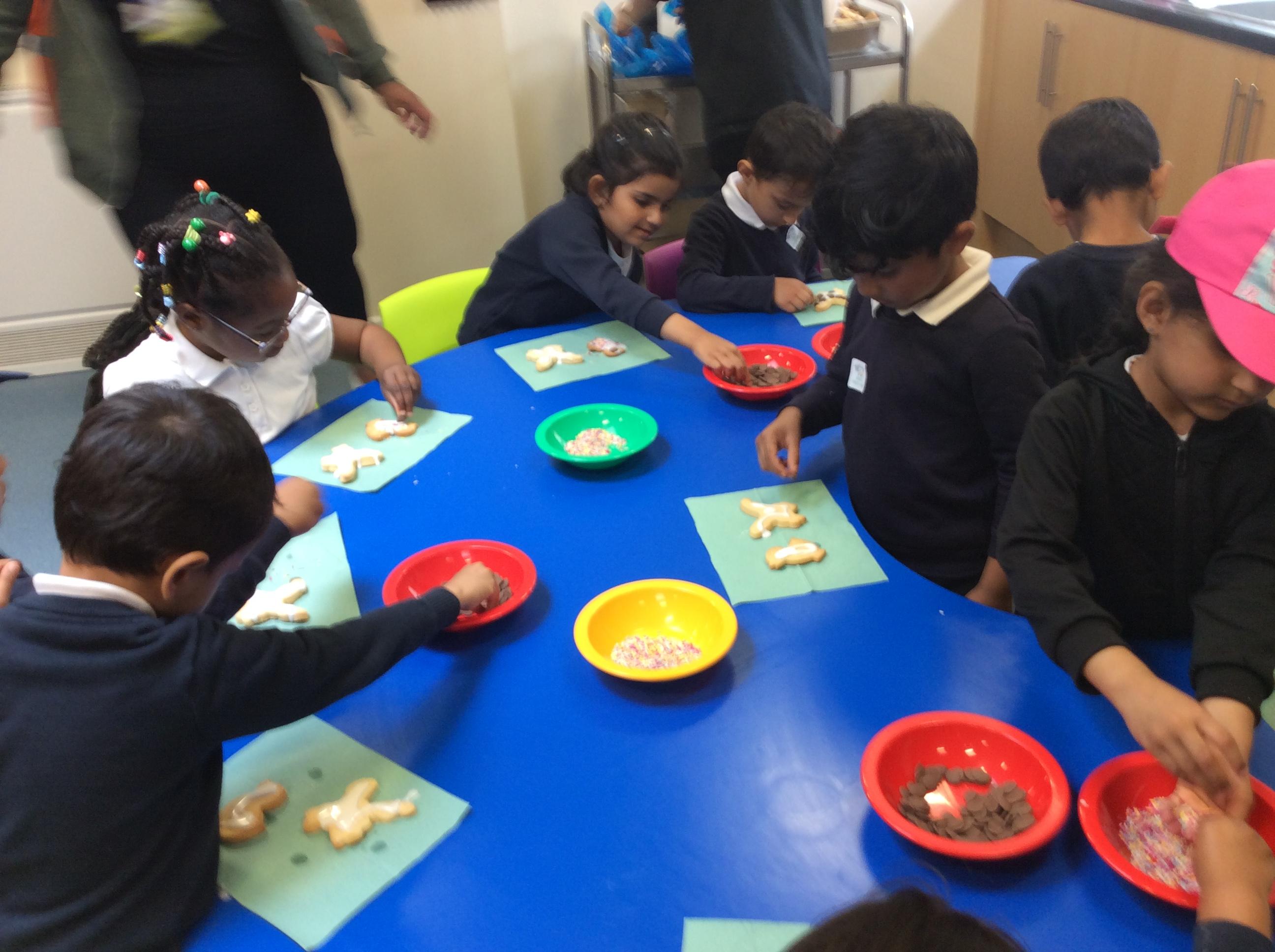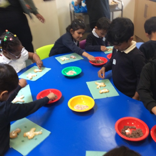 After learning the story, The Gingerbread Man, we changed it to become the story of, The Cookie Man.. We made our own cookie men by decorating biscuits.