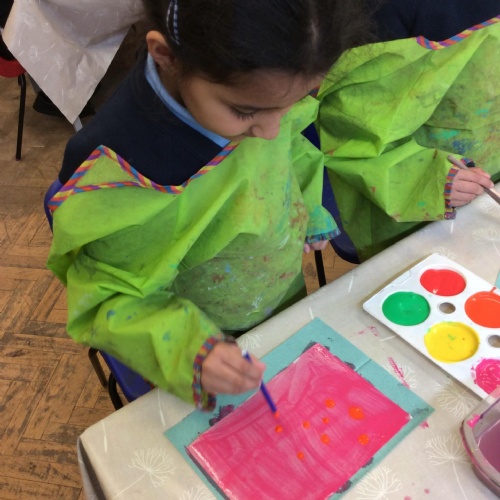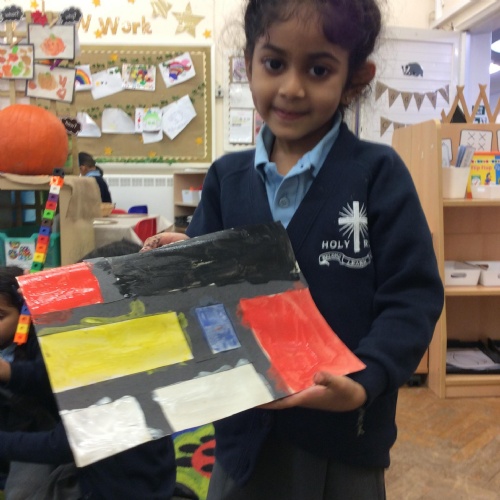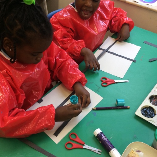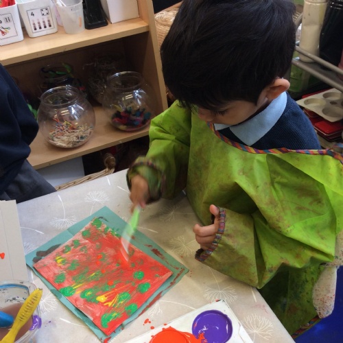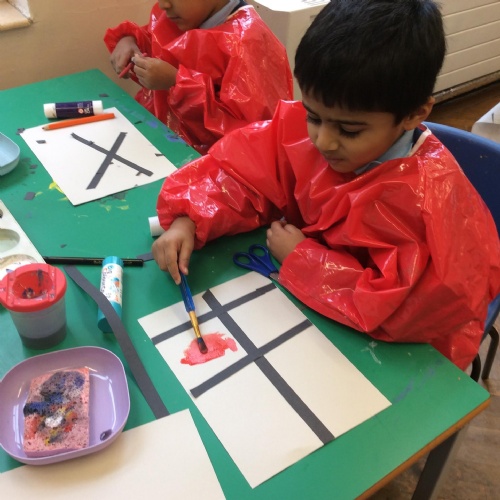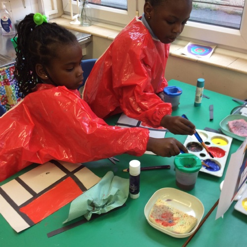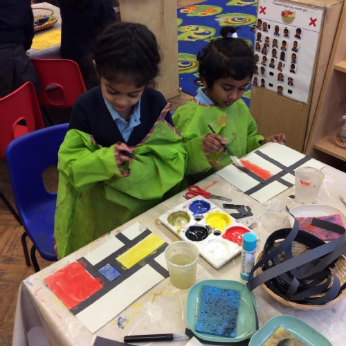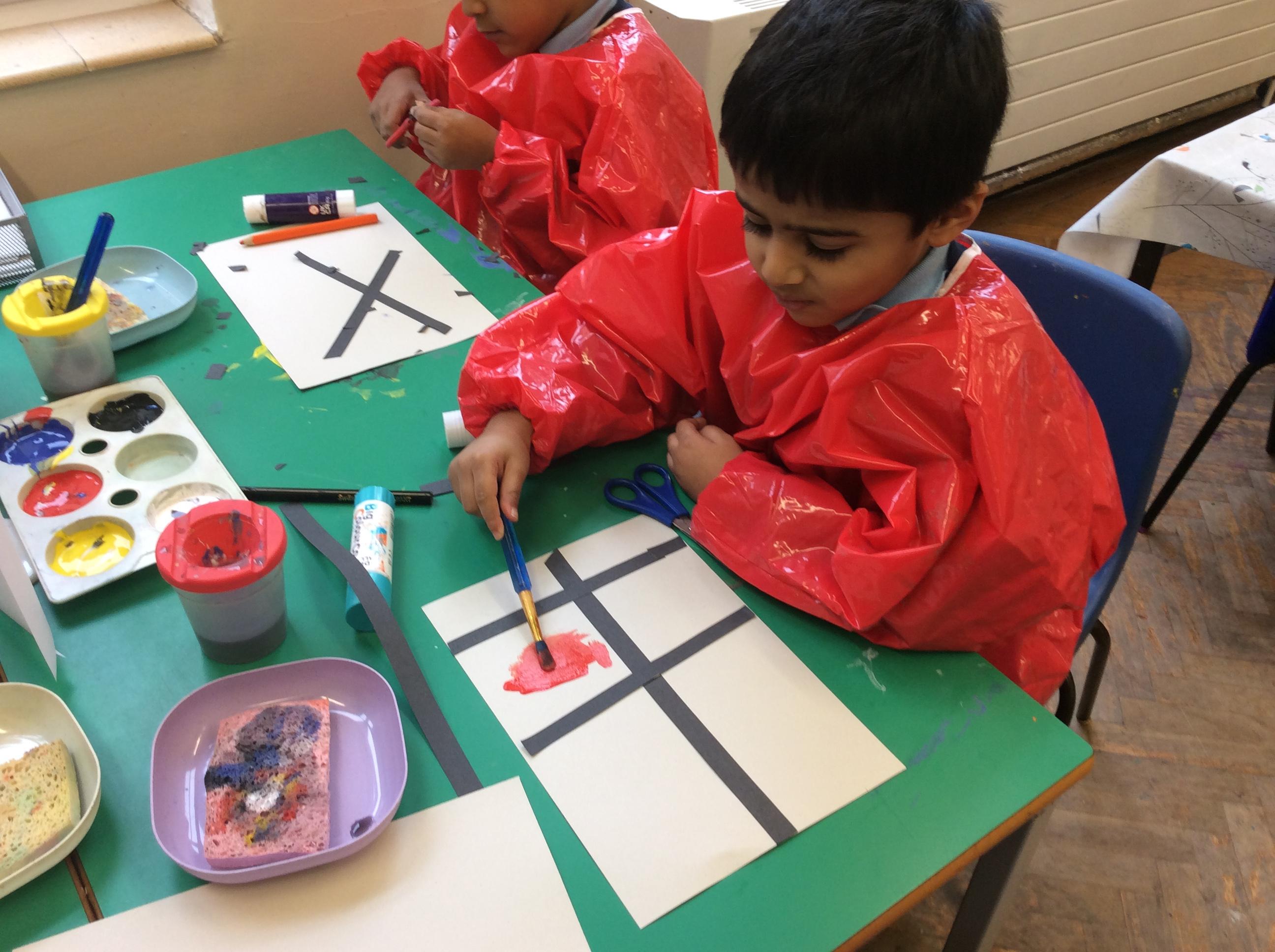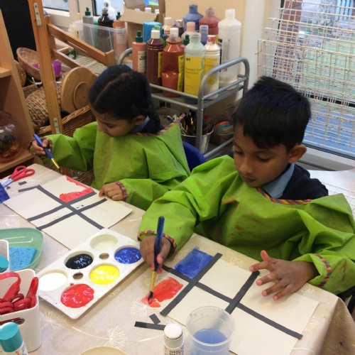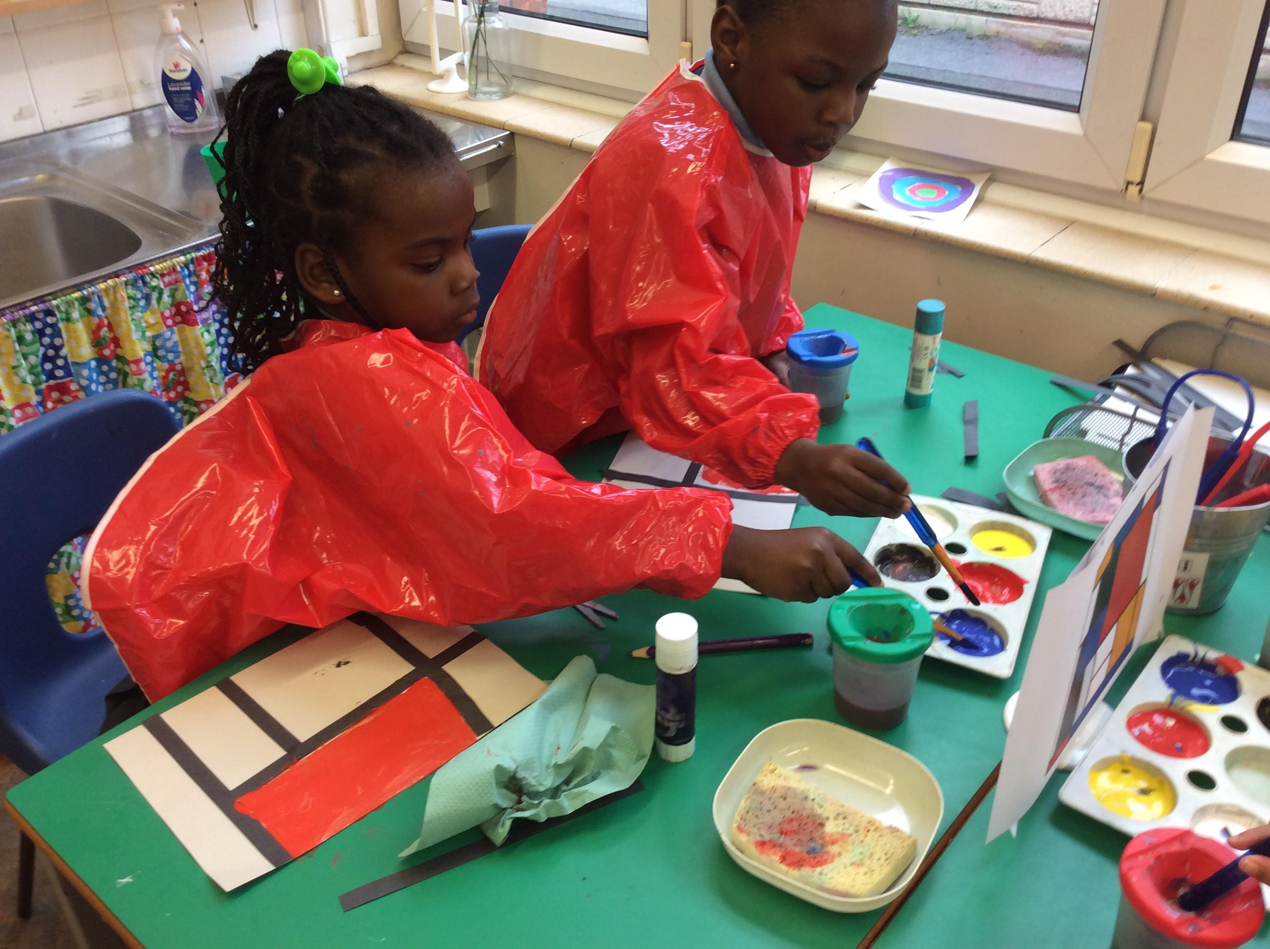 We looked at artwork by Mondrian and Kandinsky and then made our own paintings inspired by them. We think they look great!
