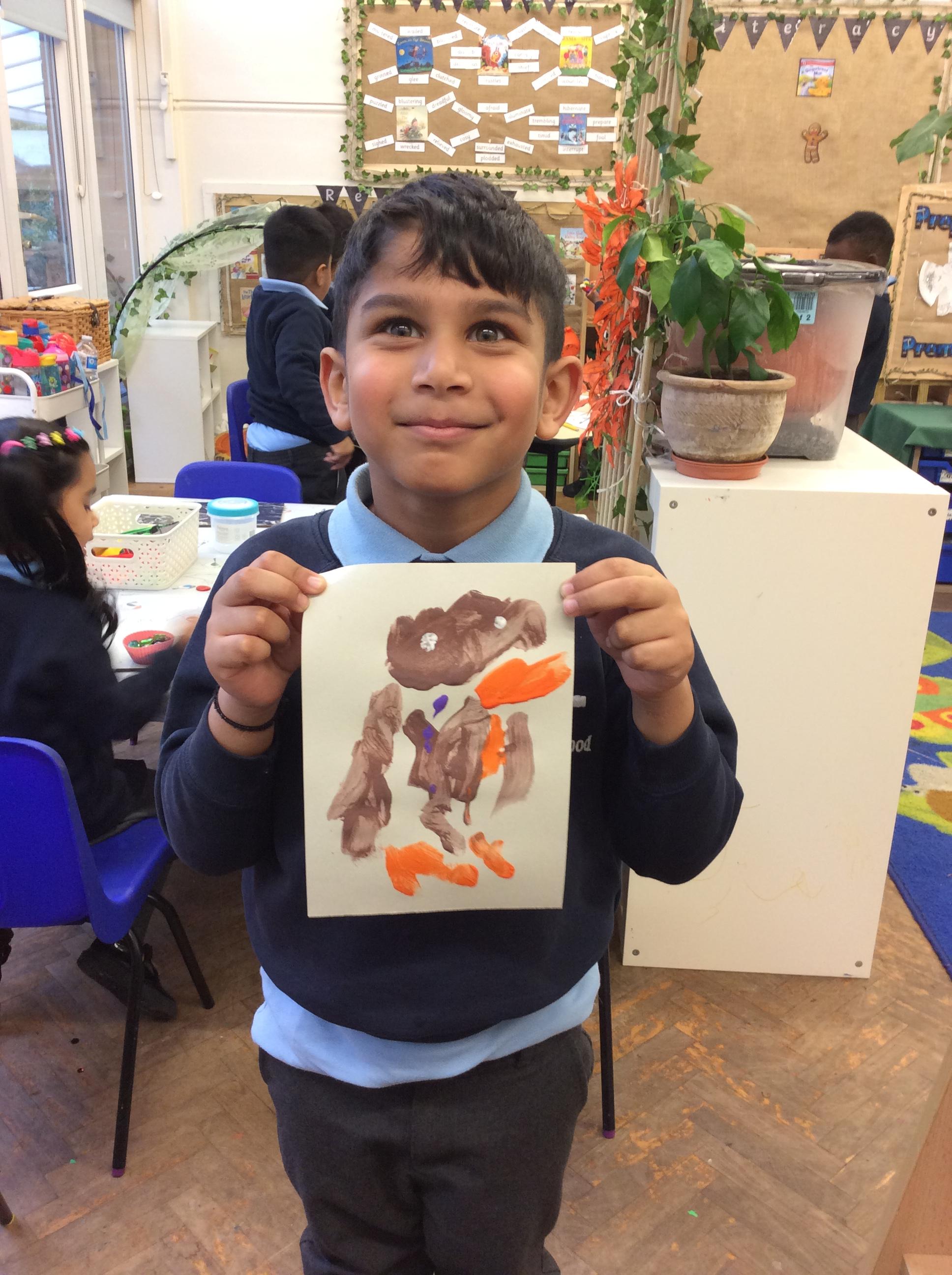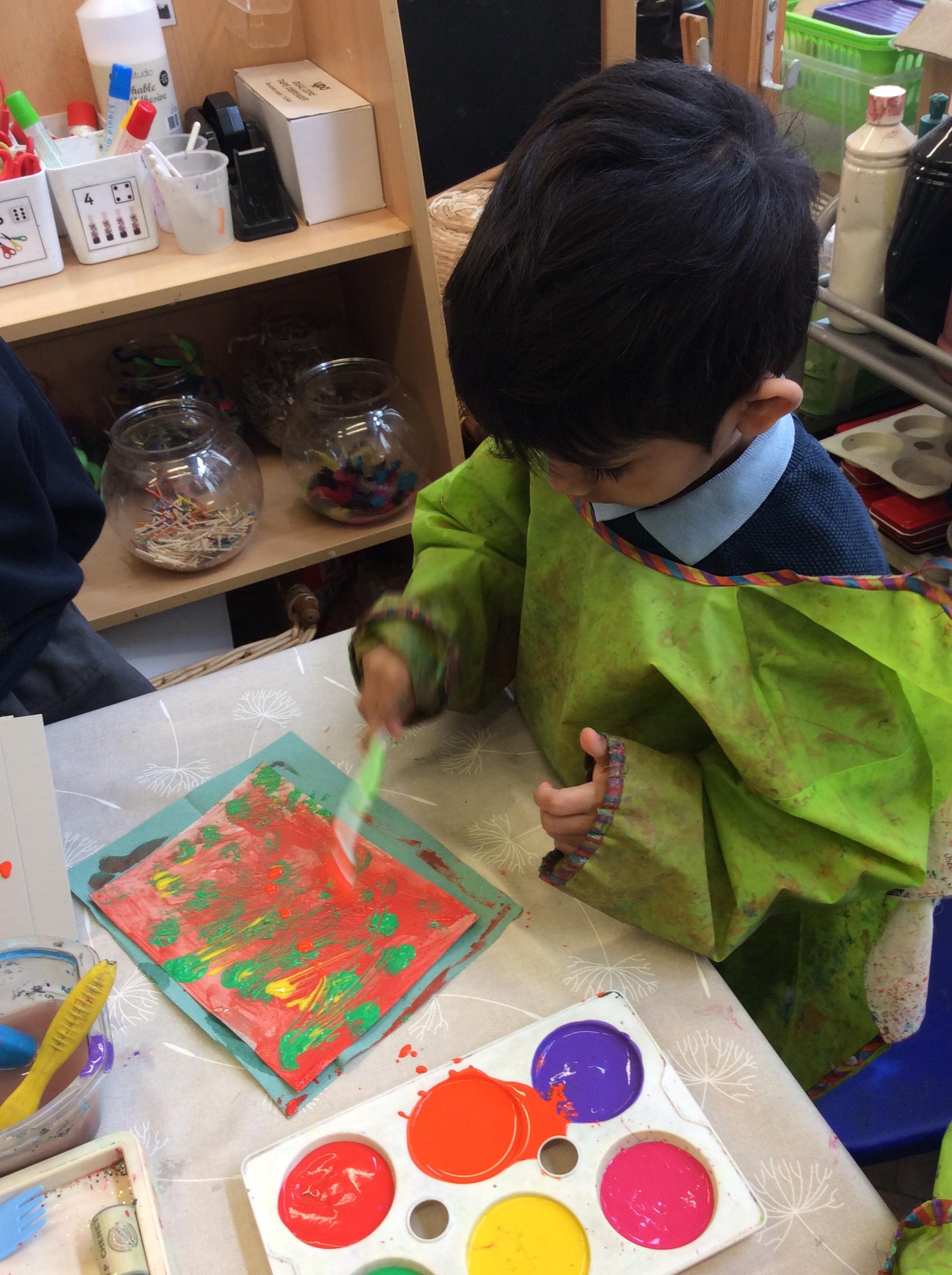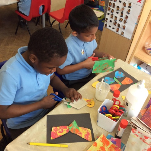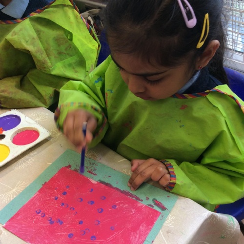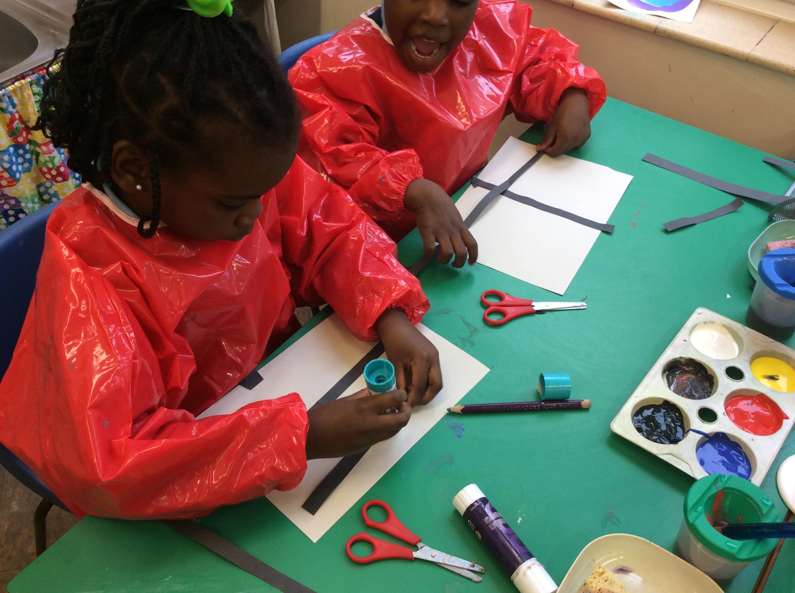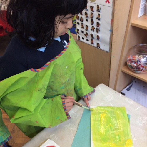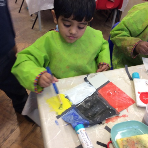 We looked at artwork by Mondrian and Kandinsky and then made our own paintings inspired by them. We think they look great!