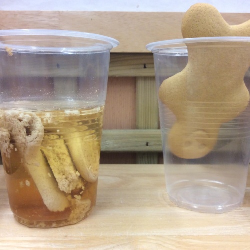 We carried out an experiment to find out what would happen to the Gingerbread Man if he got wet. We noticed that he got very soggy and broke apart. We then carried out another experiment to find out which material would be best to keep the Gingerbread Man dry. We tested different materials and found that both tin foil and a plastic bag were waterproof and would keep the Gingerbread Man dry.