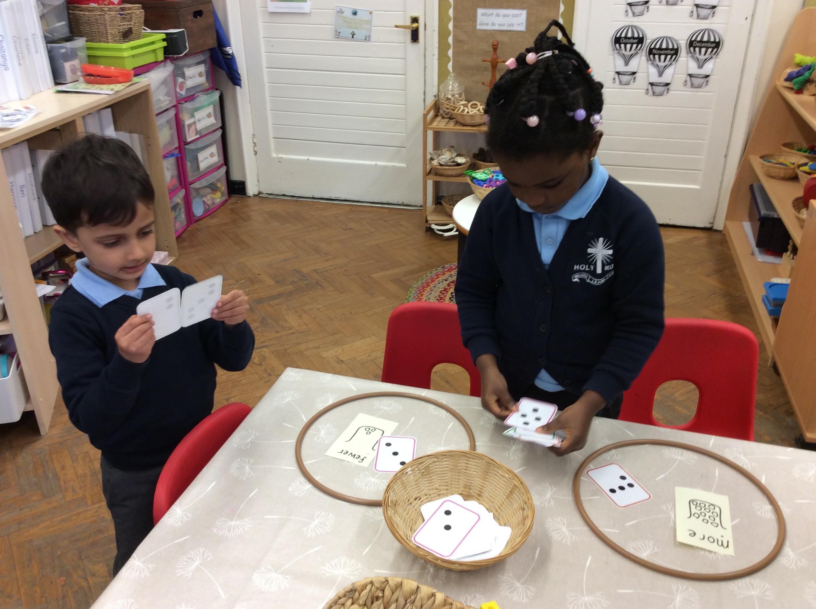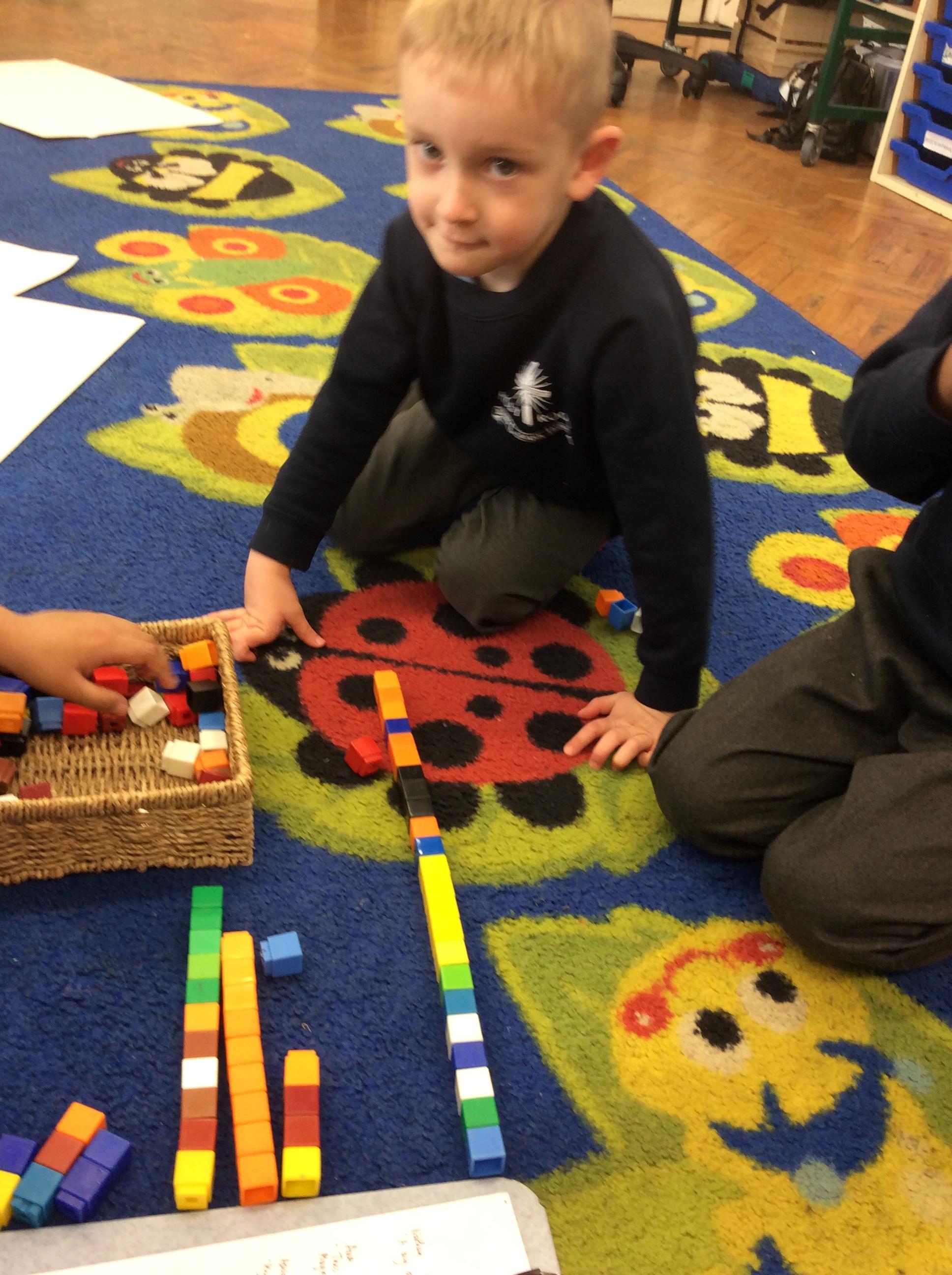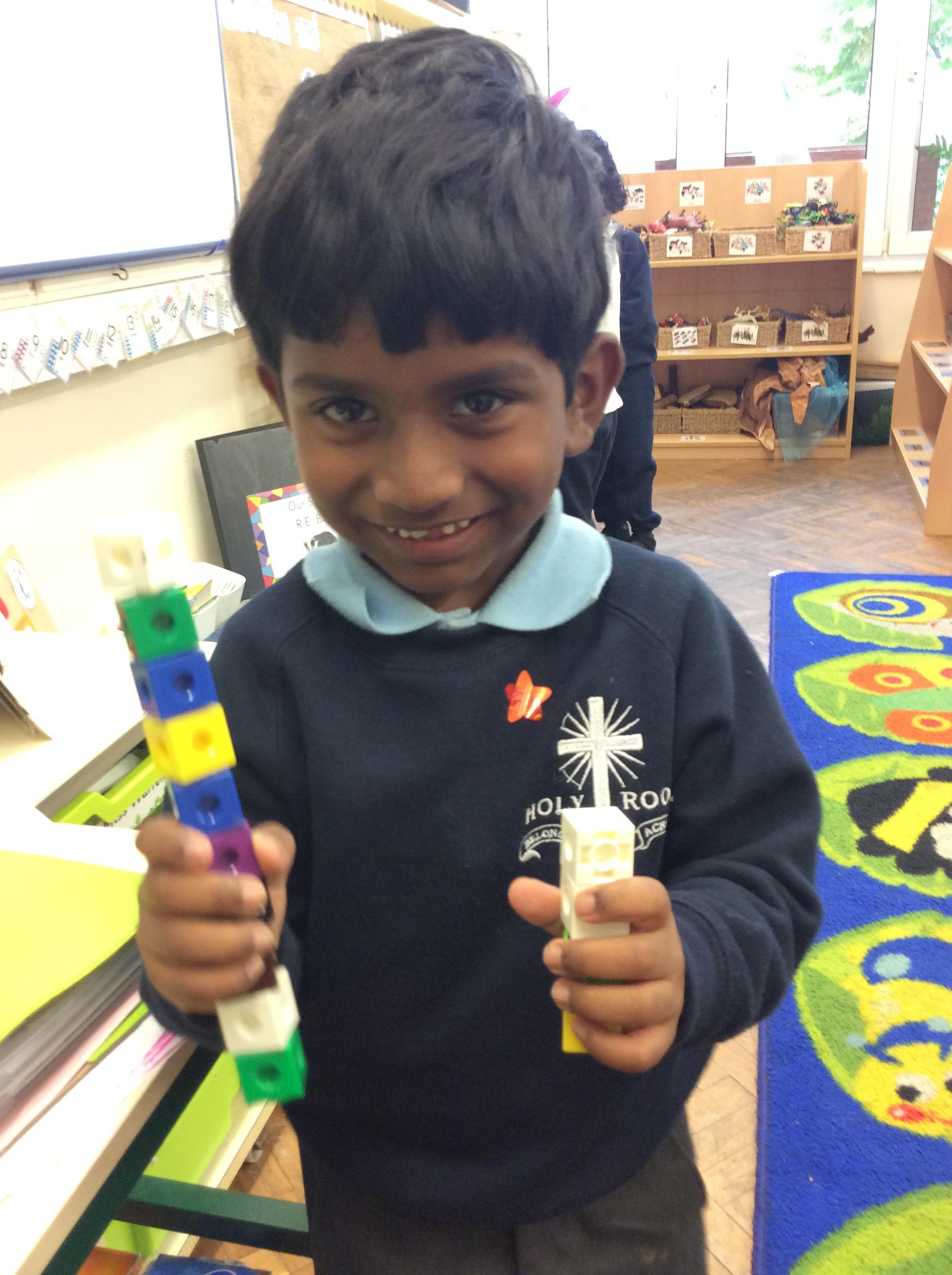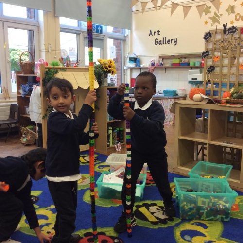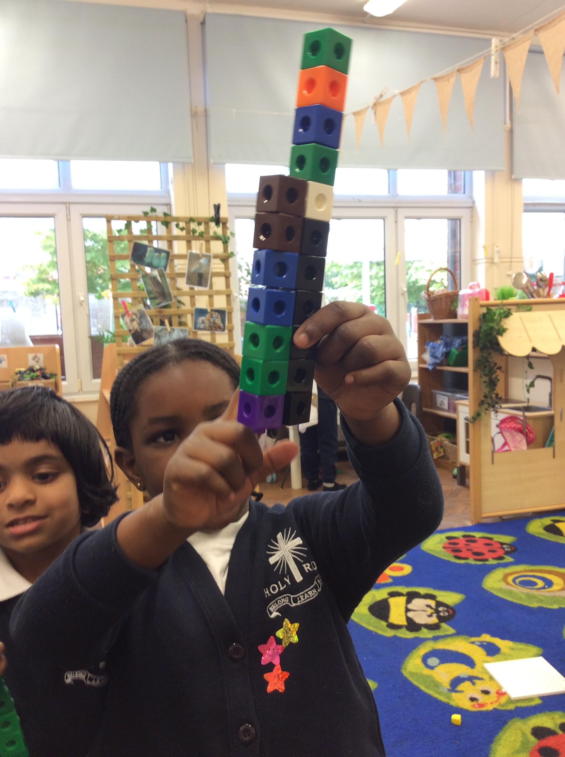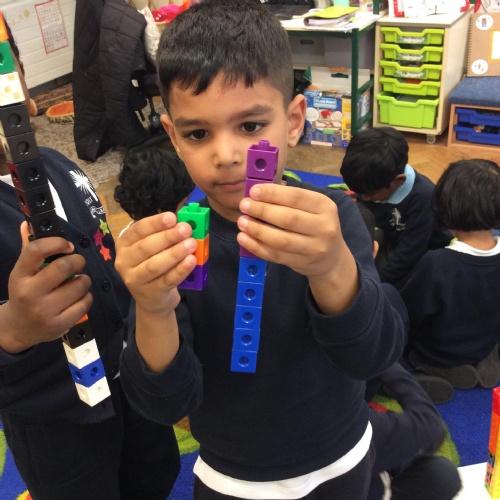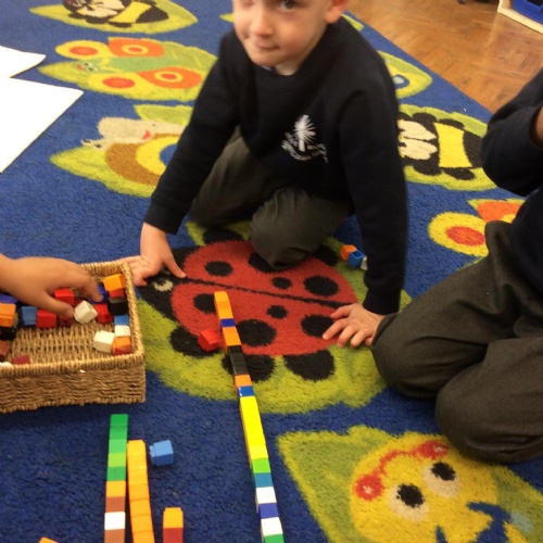 In maths we have been comparing height, length and quantities using the words, 'tall', 'short', 'long' and more. We have enjoyed exploring different activities and practising using these words to compare.